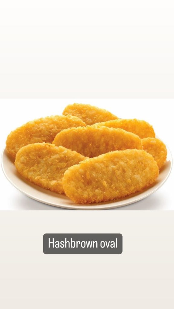 Jika melihat foto di atas secara sekilas tanpa membaca keterangan product, maka Anda akan mengira jika itu adalah nugget yang terbuat dari daging olahan. Iya sih, nugget umumnya diolah dan dicetak dalam bentuk khas agak menyerupai itu. Namun rupanya bagi kamu yang sering sarapan atau lunch di Mcd, udah pasti gak asing dengan makanan tersebut. Yes ! itu adalah hashbrown ya kak. Produk tersebut tidak dibuat dari olahan daging melainkan terbuat dari kentang yang sudah diproses dengan dipotong, diparut, dicincang kemudian dicetak dengan bentuk demikian lalu digoreng.